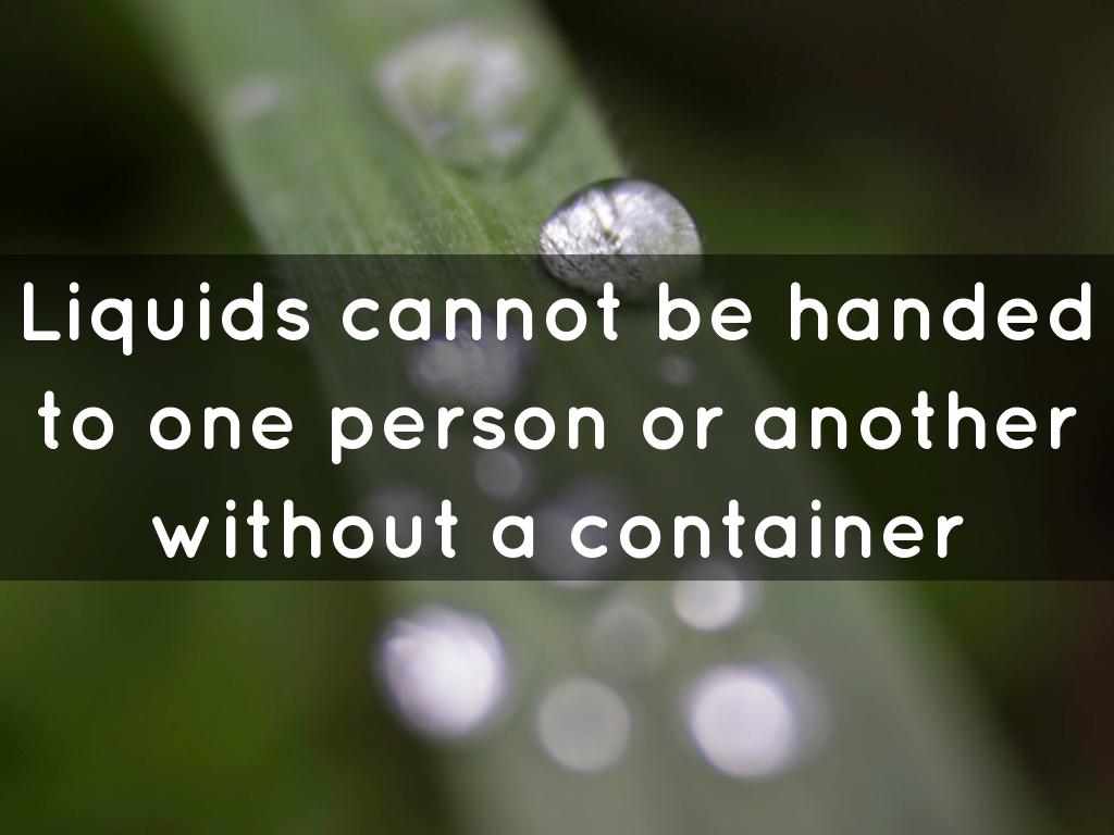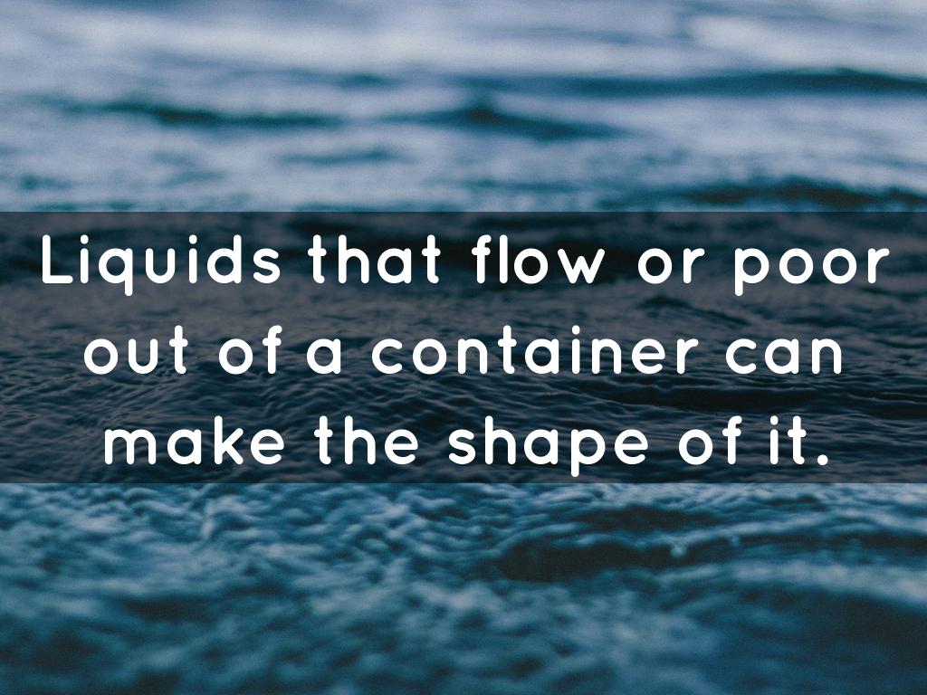 LIQUIDS DO NOT HOLD THEIR SHAPE OUR ROOM TEMPERATURE