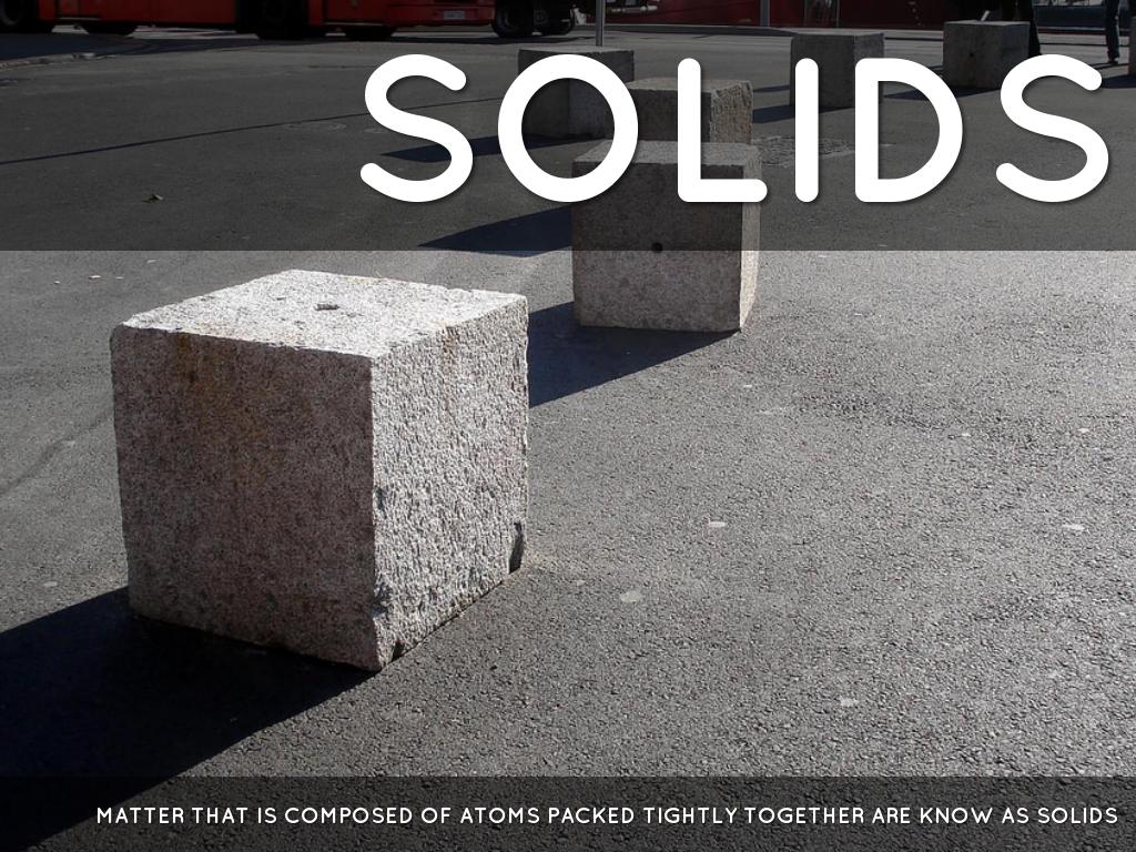 MATTER THAT IS COMPOSED OF ATOMS PACKED TIGHTLY TOGETHER ARE KNOW AS SOLIDS