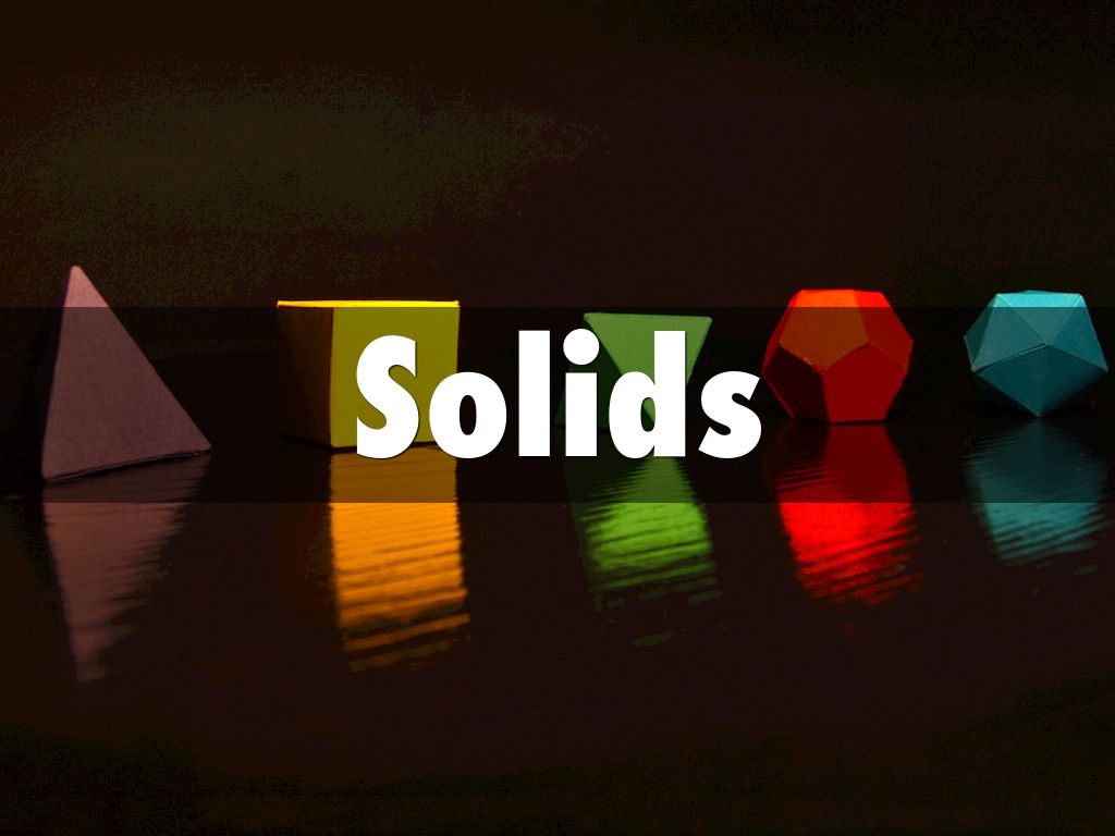 Ice cubes are examples of solids. They are hard, and have mass. If you set them at room temperature, the ice will change to a liquid, water. The shape and size of the ice cube will change, as well as the sheen, and translucency as the ice melts. When the ice first comes out of the freezer, it will be foggy so you can't see through it; at this time, the color is a silvery white. The texture will start out hard, and when it melts, it will become a squishy liquid. The volume will never change.