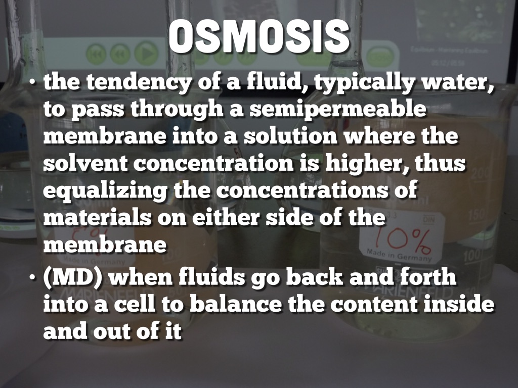 (MD) when fluids go back and forth into a cell to balance the content inside and out of it
