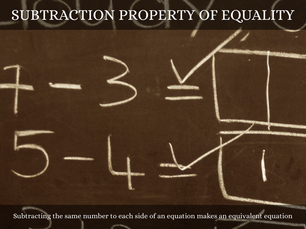 Subtracting the same number to each side of an equation makes an equivalent equation