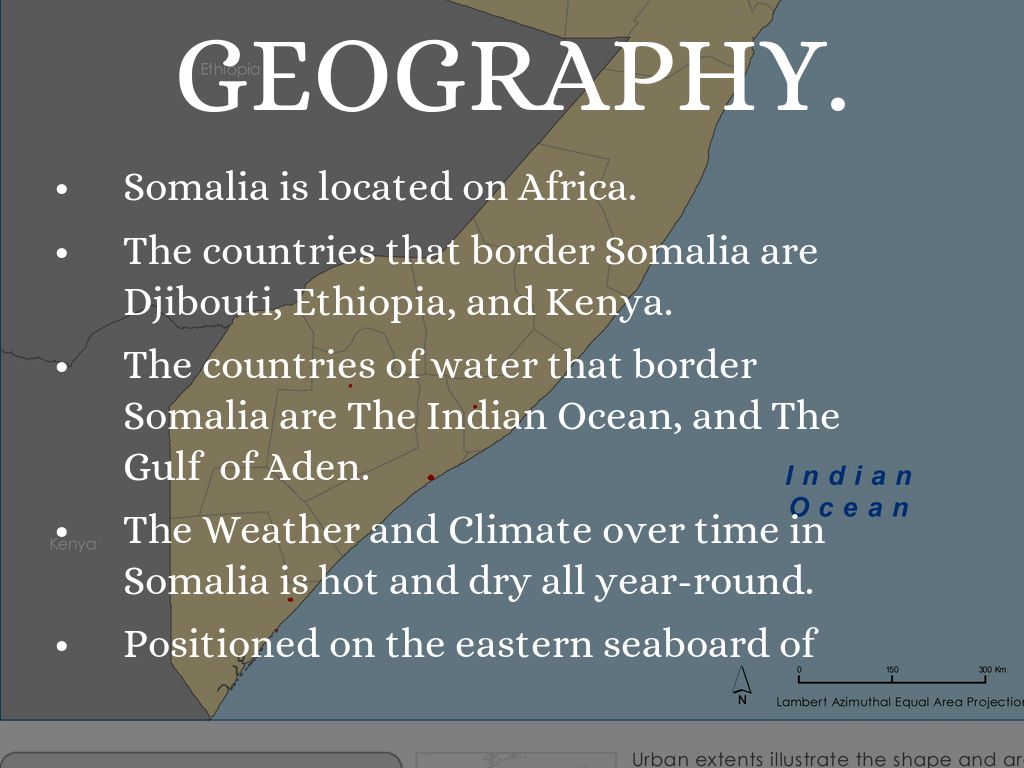 • Positioned on the eastern seaboard of Africa, at the mouth of the Bab el Mandeb passageway into the Red Sea and Suez Canal, Somalia is often referred to as the Horn of Africa due to its resemblance to a rhino's horn.