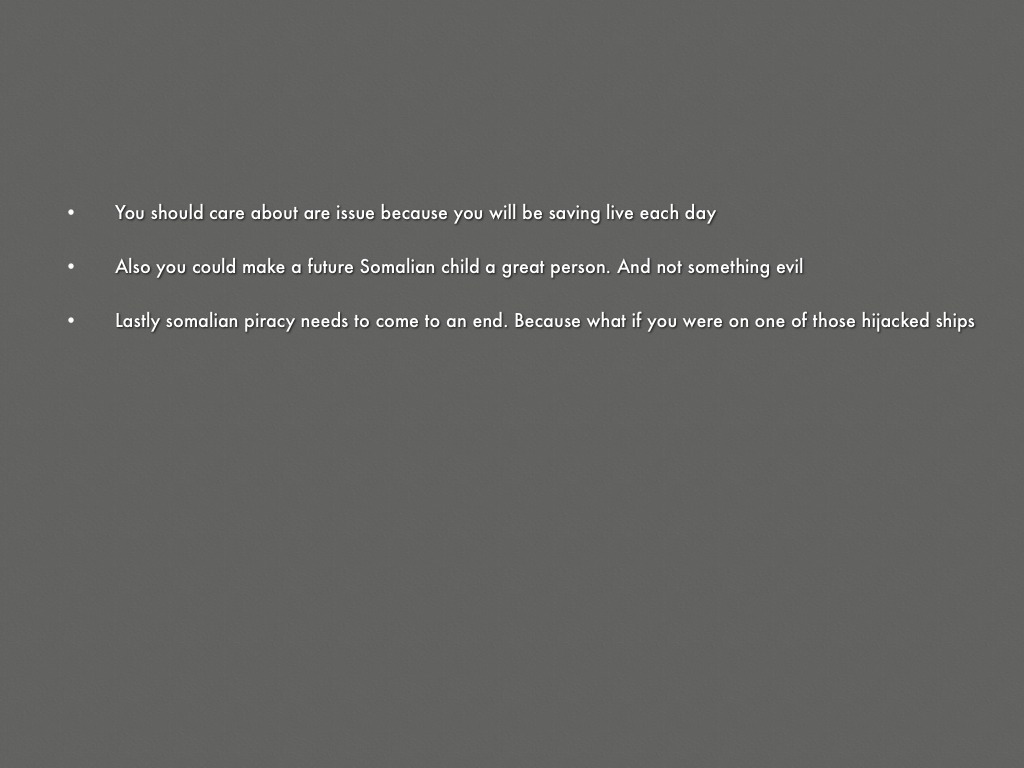 • Lastly somalian piracy needs to come to an end. Because what if you were on one of those hijacked ships