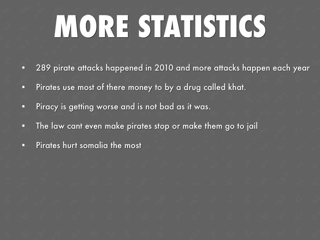 • 289 pirate attacks happened in 2010 and more attacks happen each year