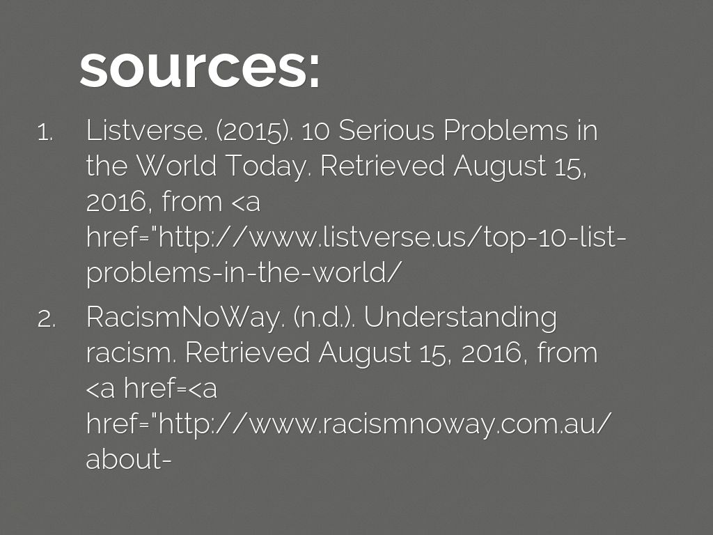 Listverse. (2015). 10 Serious Problems in the World Today. Retrieved August 15, 2016, from