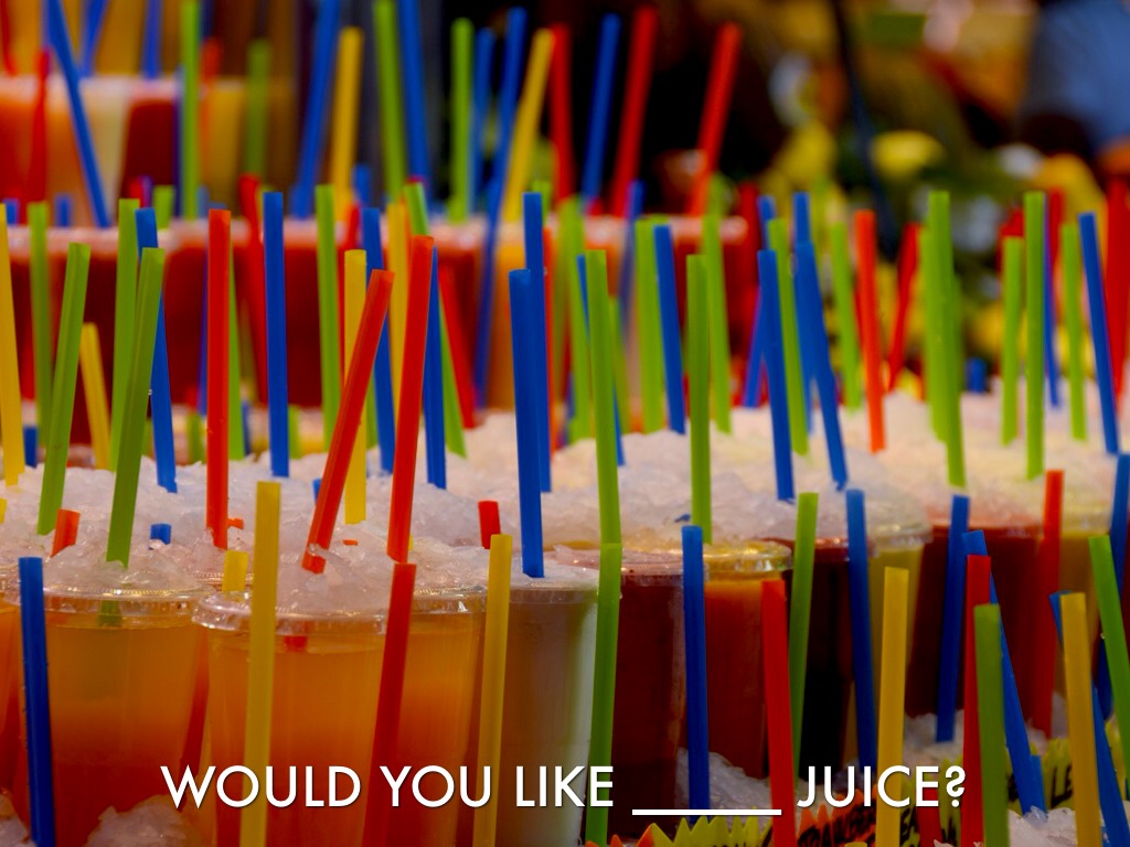 WOULD YOU LIKE _____ JUICE?