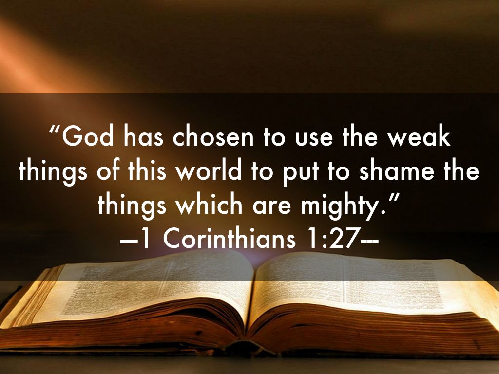 “God has chosen to use the weak things of this world to put to shame the things which are mighty.”