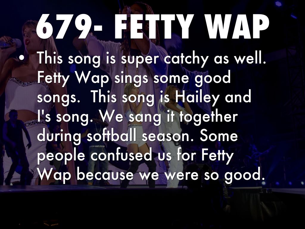 This song is super catchy as well. Fetty Wap sings some good songs. This song is Hailey and I's song. We sang it together during softball season. Some people confused us for Fetty Wap because we were so good.