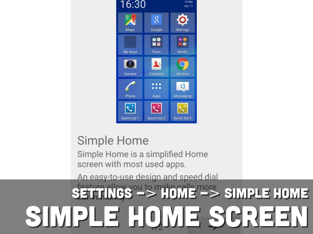 There are different types of home screens that you can set up on the Z3. I use the Google Now Launcher for mine, but you can also use a simplified Home Screen called Simple Home. It is found under the Settings -> Home -> Simple Home. It will show the most used apps on the home screen and gives you the option to enlarge the text as well.