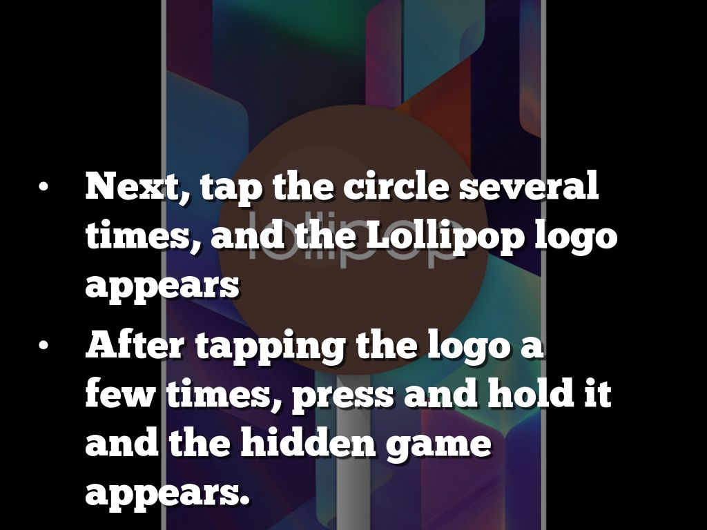 There is a hidden game within Lollipop which plays homage to Flappy Birds. To access the hidden game.....
