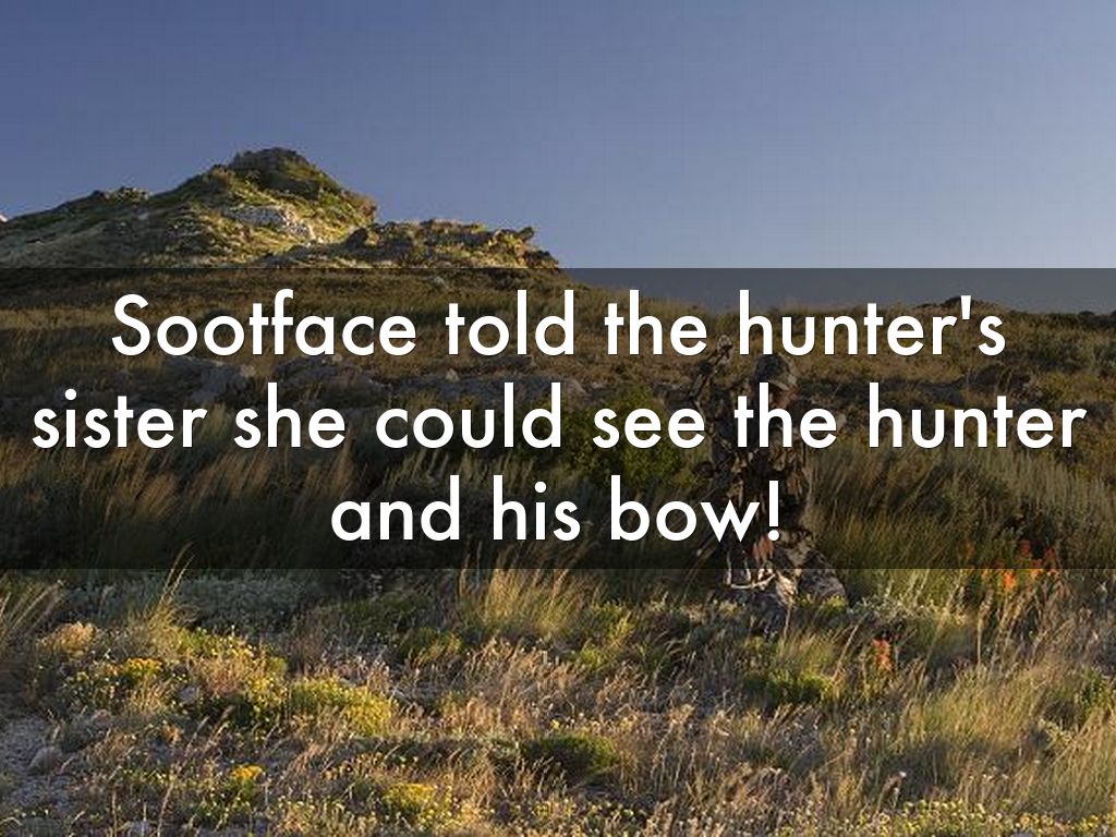 Sootface told the hunter's sister she could see the hunter and his bow!