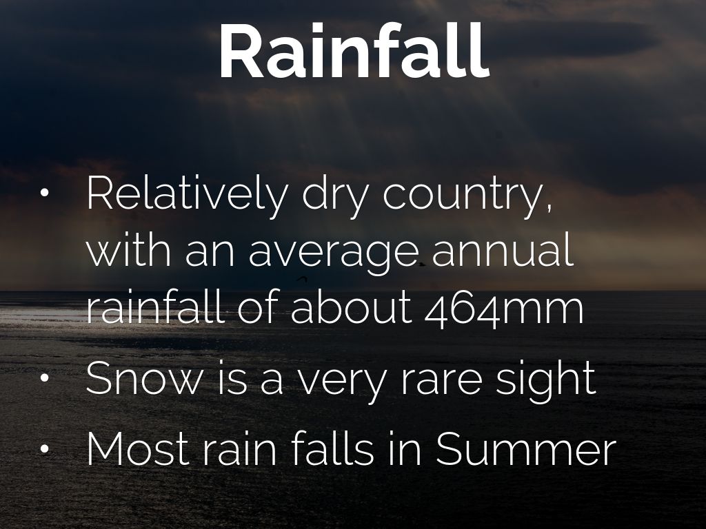 • Relatively dry country, with an average annual rainfall of about 464mm