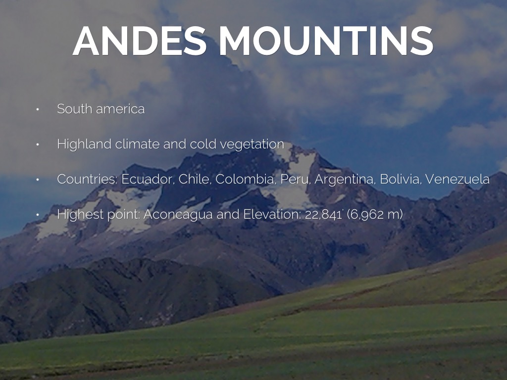 Highest point: Aconcagua and Elevation: 22,841' (6,962 m)