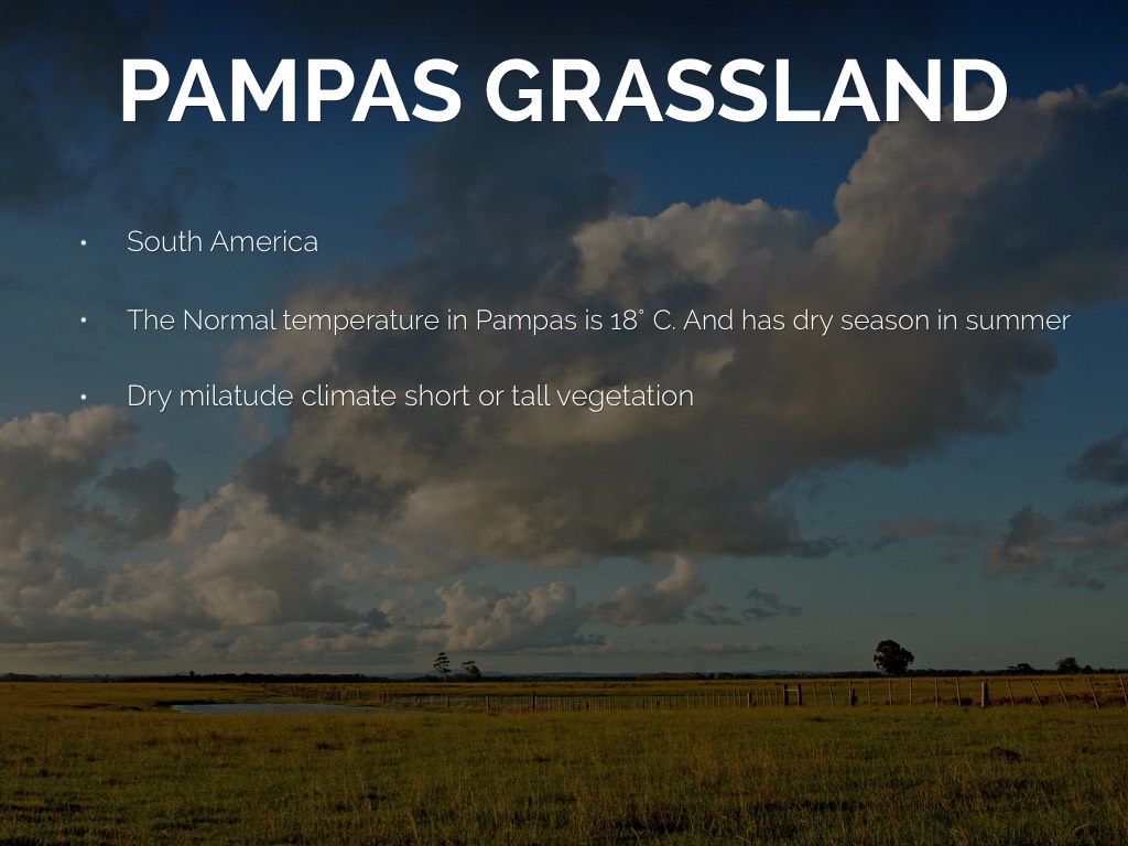The Normal temperature in Pampas is 18° C. And has dry season in summer