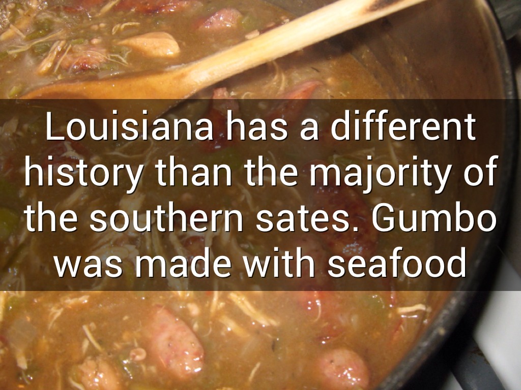 Louisiana has a different history than the majority of the southern sates. Gumbo was made with seafood
