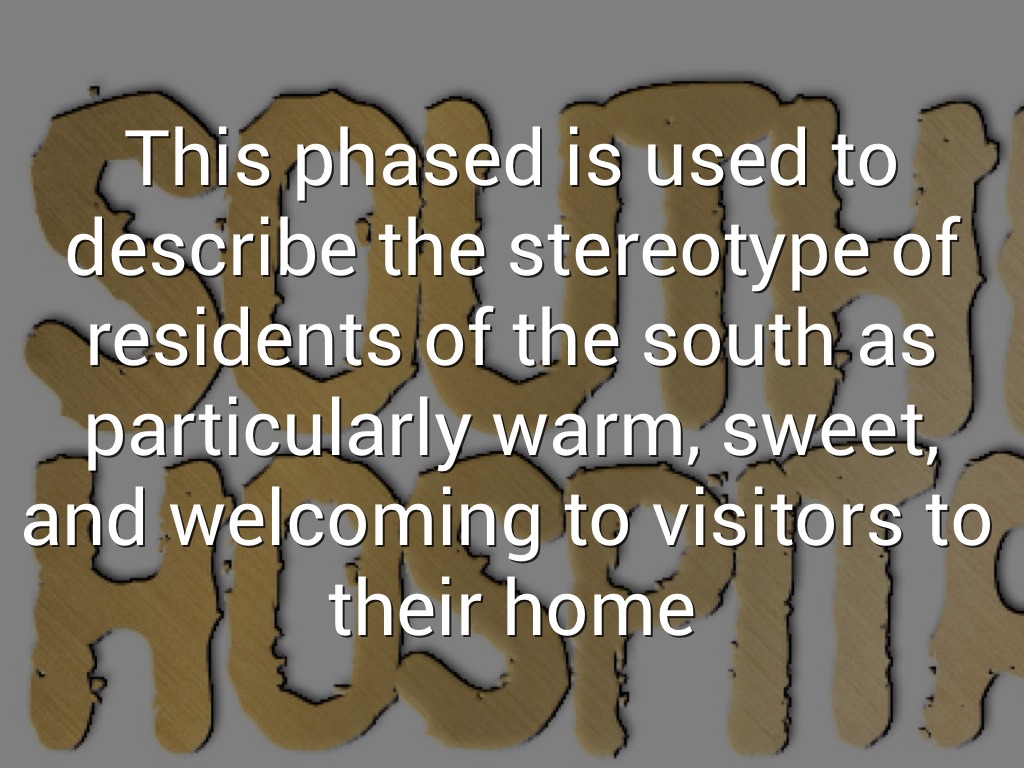 This phased is used to describe the stereotype of residents of the south as particularly warm, sweet, and welcoming to visitors to their home