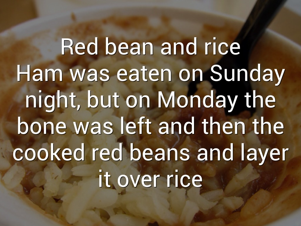 Ham was eaten on Sunday night, but on Monday the bone was left and then the cooked red beans and layer it over rice