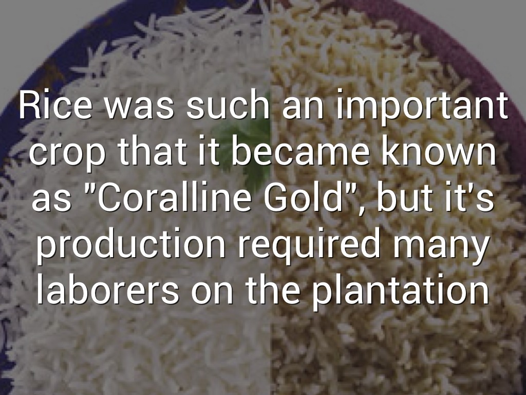 Rice was such an important crop that it became known as "Coralline Gold", but it's production required many laborers on the plantation