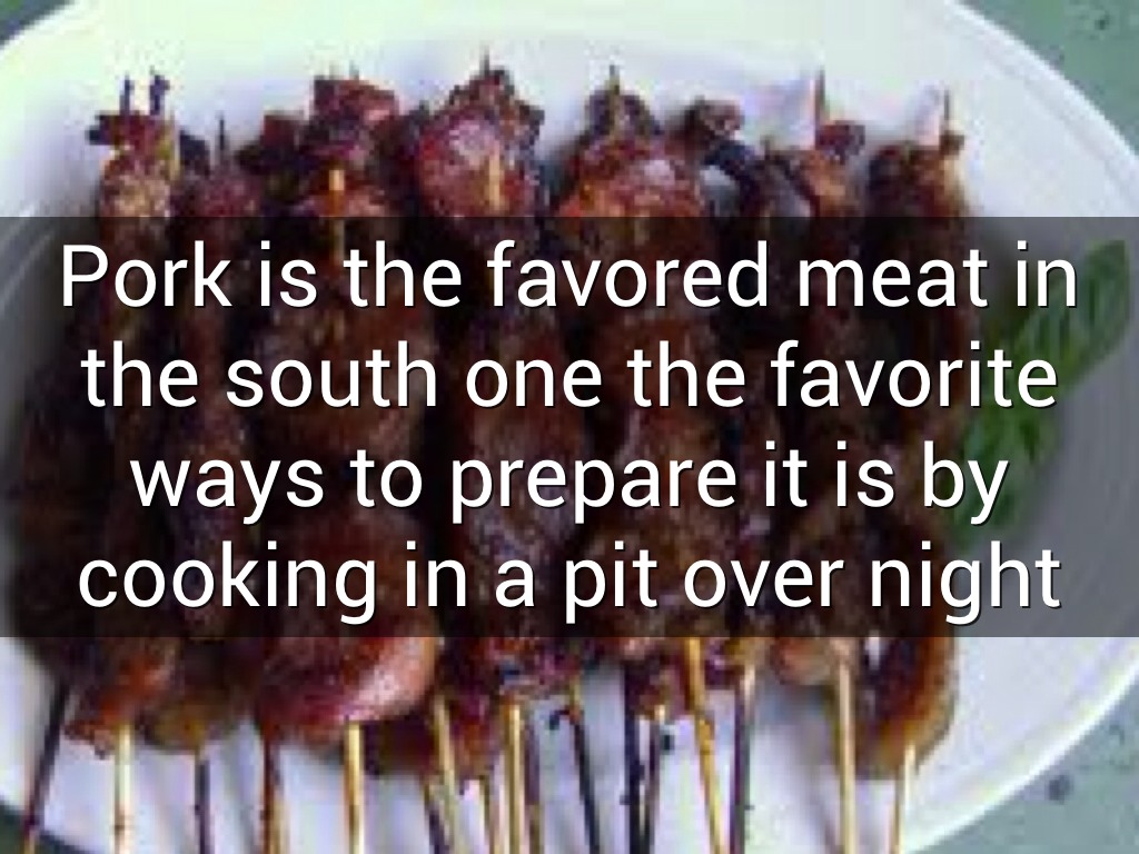 Pork is the favored meat in the south one the favorite ways to prepare it is by cooking in a pit over night