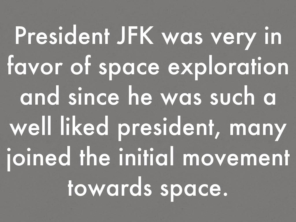 President JFK was very in favor of space exploration and since he was such a well liked president, many joined the initial movement towards space.