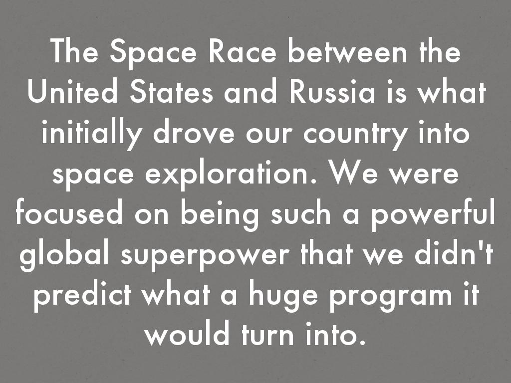 The Space Race between the United States and Russia is what initially drove our country into space exploration. We were focused on being such a powerful global superpower that we didn't predict what a huge program it would turn into.