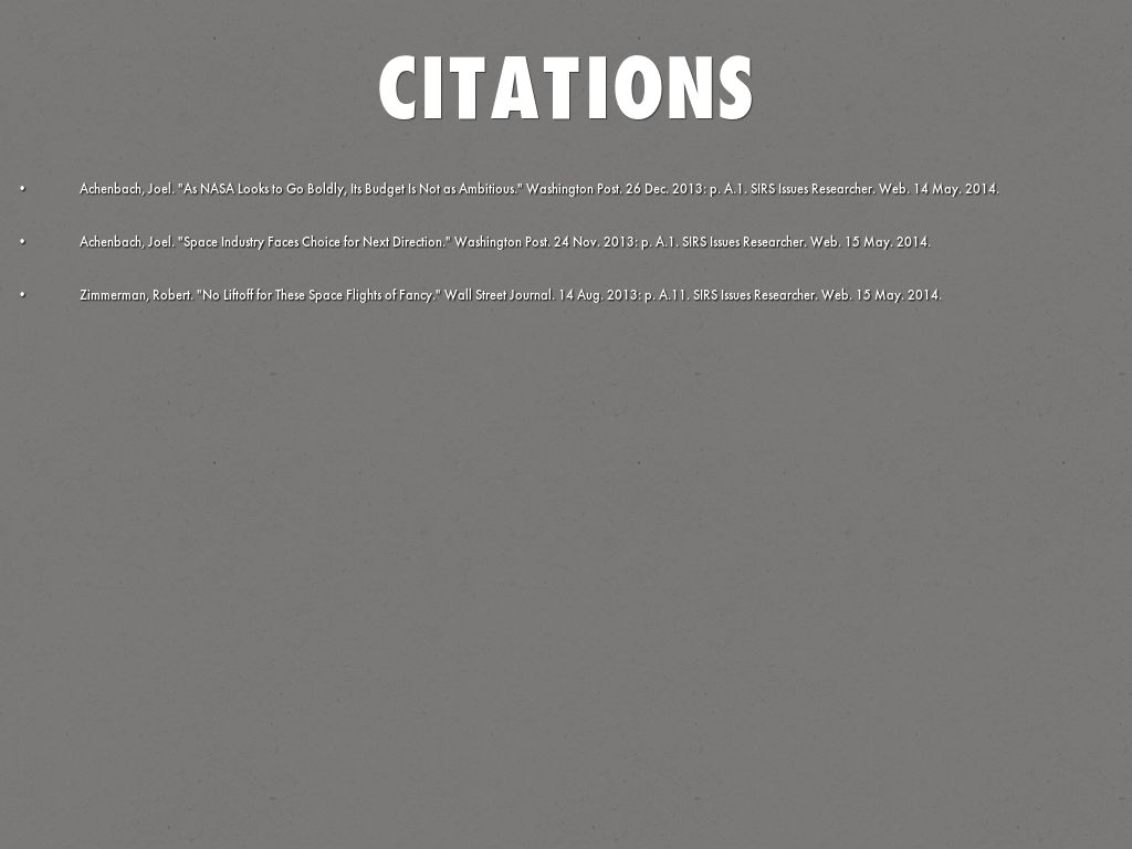 through the articles I have read is all of this will cost an excessive amount of money and lives will be lost in the process of testing the new spaceships. It costs over one billion dollars to make and man a space ship. It is not a one hundred percent guarantee that it will be safe because there is a possibility that there will be defects somewhere along the line. The bodies of the astronauts will be unreachable resulting in a funeral with an empty coffin. Money is a big issue in this topic. Too much of it will be spent on failed attempts and abandoned missions.