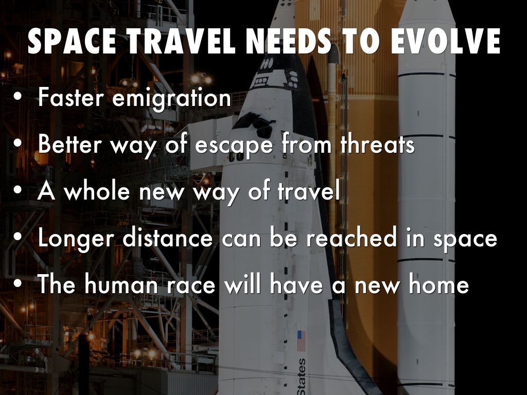 technology. Take the space race in the 1960’s for example, we went to the moon, and now we have these chromebooks. These computers are actually stronger than what powered the spaceship that went to the moon. That is a powerful advancement. If we can evolve space travel technology, who knows what the future of technology will hold. Of course, like most technology, something that will make humans lazier will be created, but along the line, something that is useful will arrive, something that will change the human race in many different ways. From the way we cook, to where we travel and how fast we get there. This can give us the hands on experience and knowledge to create new things. There will be infinite possibilities when the secrets of space travel in unlocked. People could be asking, “Hey, where do you live.”. And the response could be, “Oh on the planet over there.”