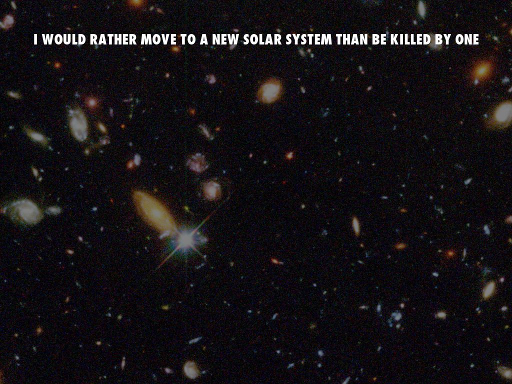 In conclusion, I would rather move to a new solar system than be killed by one. It does