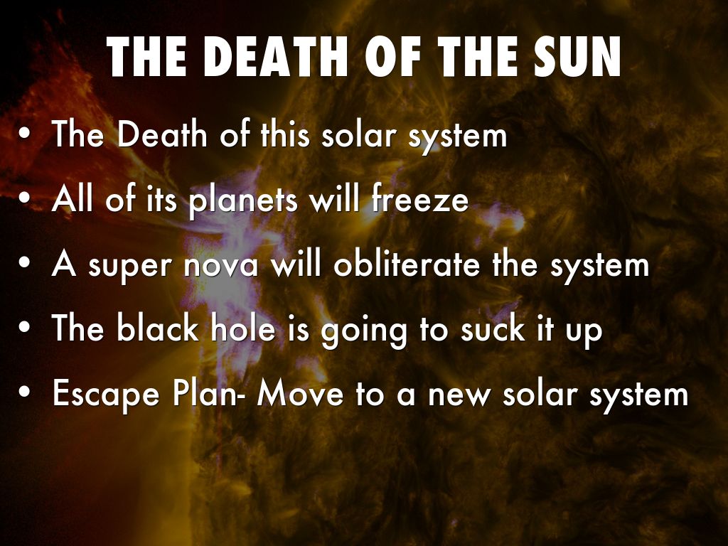 The death of the sun is not so far away. It is bound to happen at some point. When it