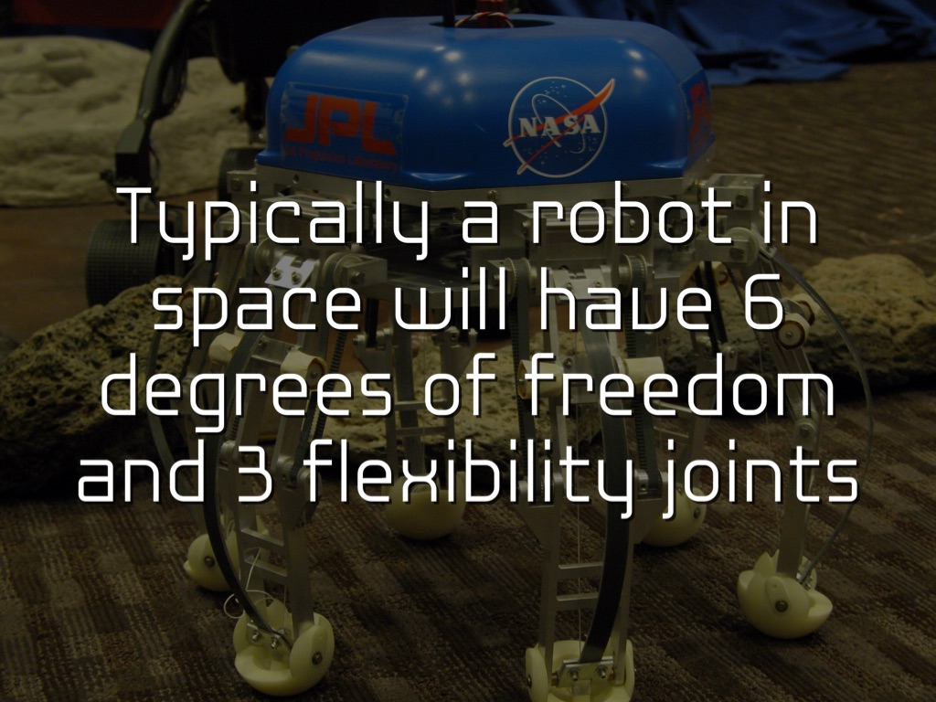 Typically a robot in space will have 6 degrees of freedom and 3 flexibility joints