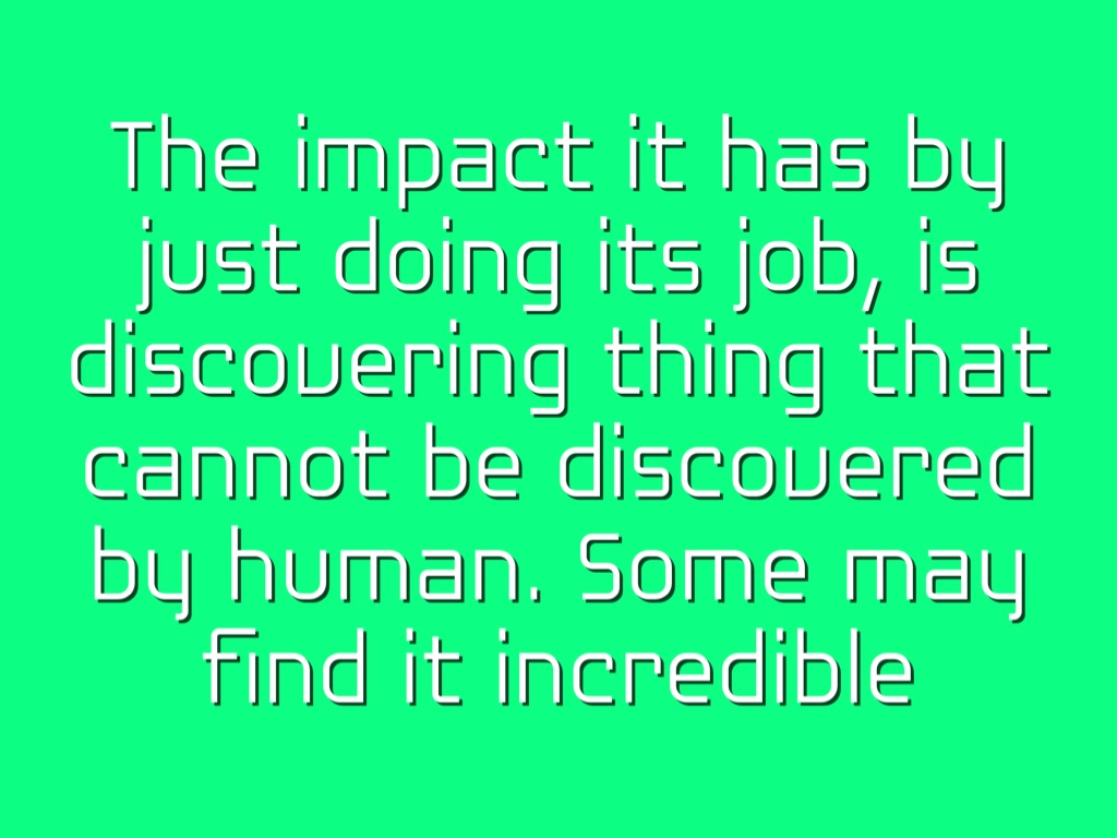The impact it has by just doing its job, is discovering thing that cannot be discovered by human. Some may find it incredible