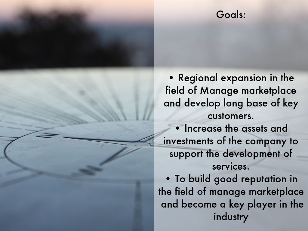 • Regional expansion in the field of Manage marketplace and develop long base of key customers. • Increase the assets and investments of the company to support the development of services. • To build good reputation in the field of manage marketplace and become a key player in the industry