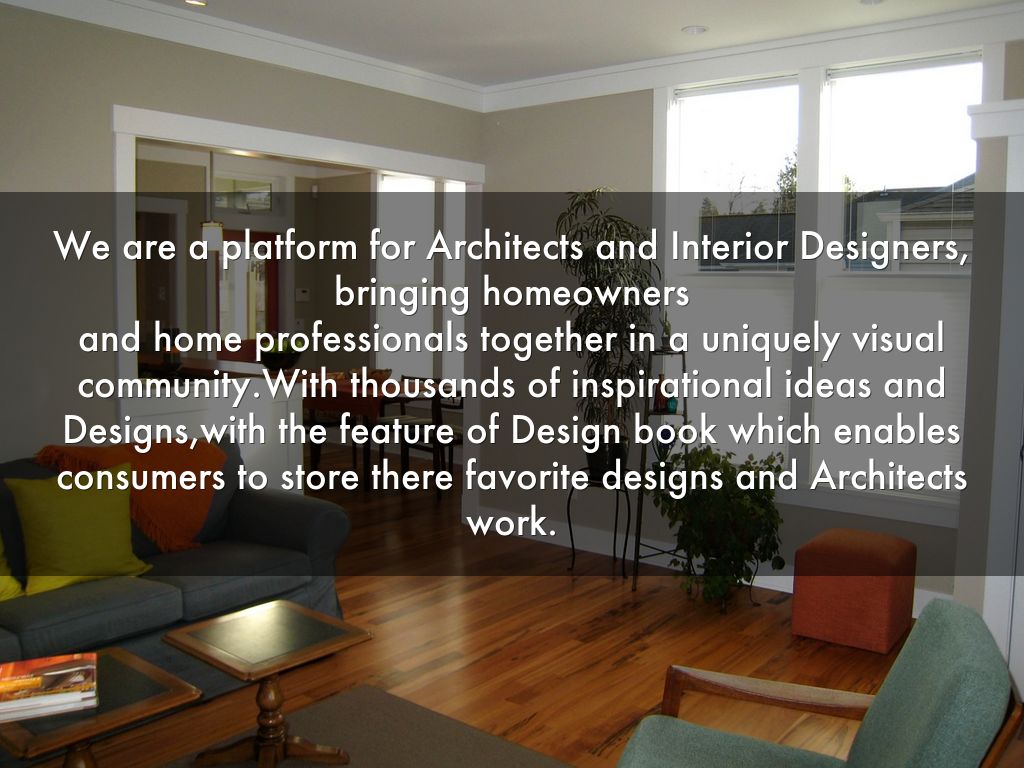 We are a platform for Architects and Interior Designers, bringing homeowners and home professionals together in a uniquely visual community.With thousands of inspirational ideas and Designs,with the feature of Design book which enables consumers to store there favorite designs and Architects work.