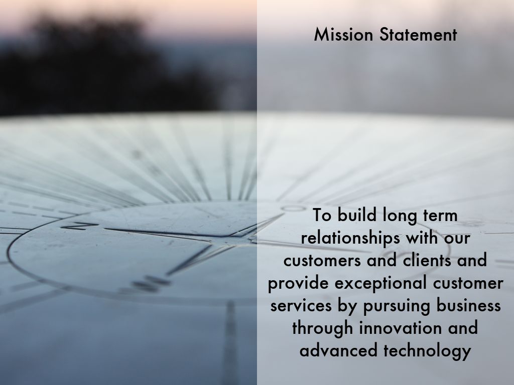 To build long term relationships with our customers and clients and provide exceptional customer services by pursuing business through innovation and advanced technology