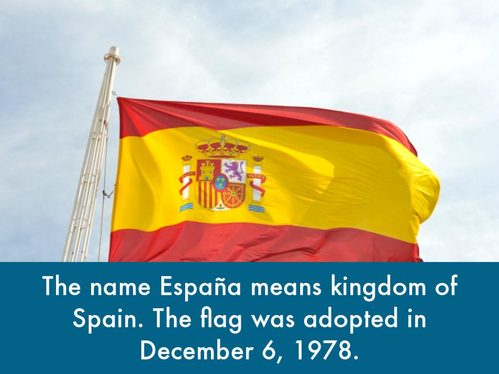 The name España means kingdom of Spain. The flag was adopted in December 6, 1978.