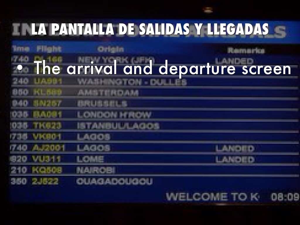 LA PANTALLA DE SALIDAS Y LLEGADAS