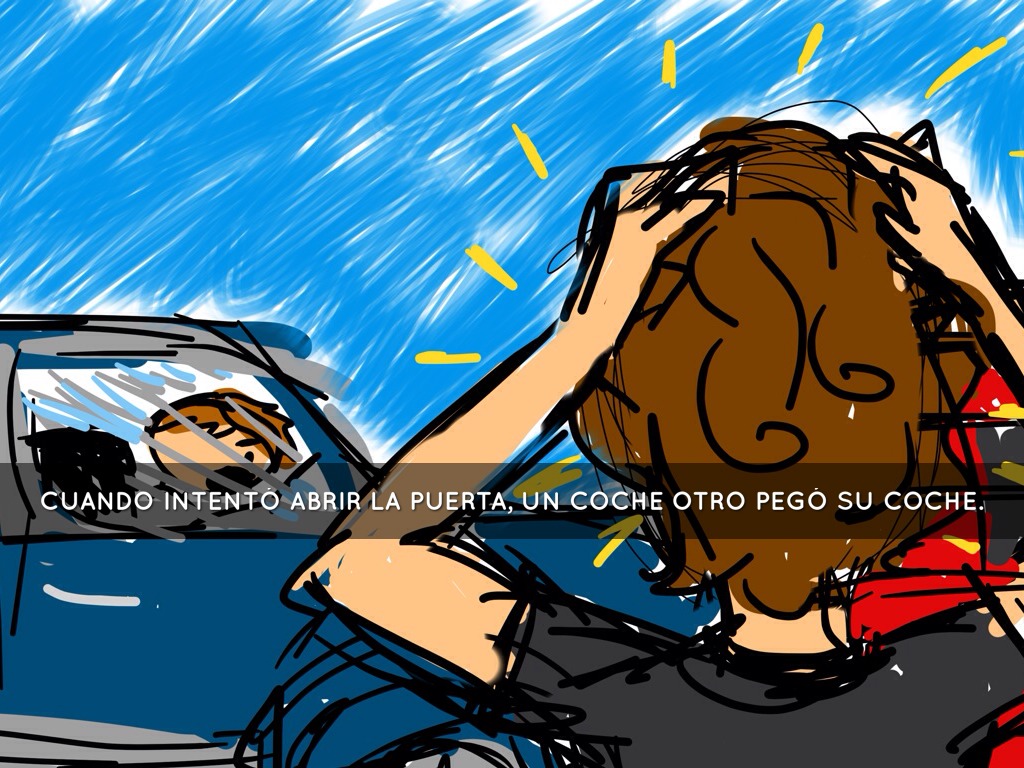 CUANDO INTENTÓ ABRIR LA PUERTA, UN COCHE OTRO PEGÓ SU COCHE.