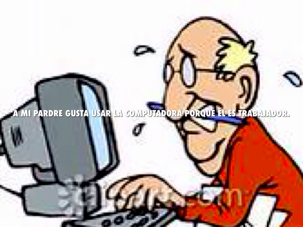 A MI PARDRE GUSTA USAR LA COMPUTADORA PORQUE ÉL ES TRABAJADOR.