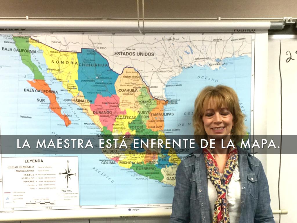 LA MAESTRA ESTÁ ENFRENTE DE LA MAPA.