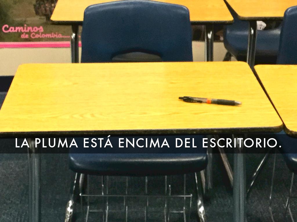 LA PLUMA ESTÁ ENCIMA DEL ESCRITORIO.