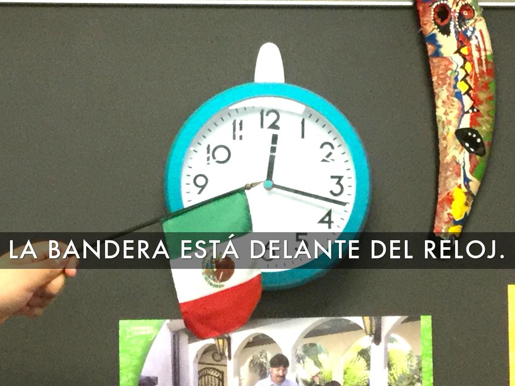 LA BANDERA ESTÁ DELANTE DEL RELOJ.