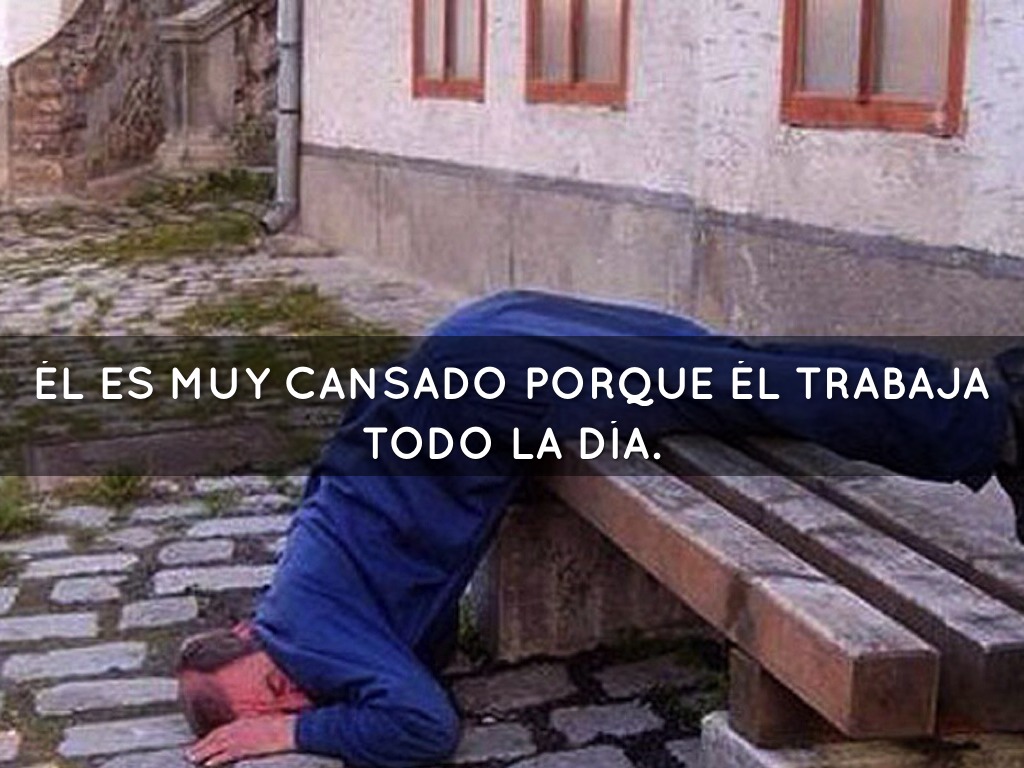 ÉL ES MUY CANSADO PORQUE ÉL TRABAJA