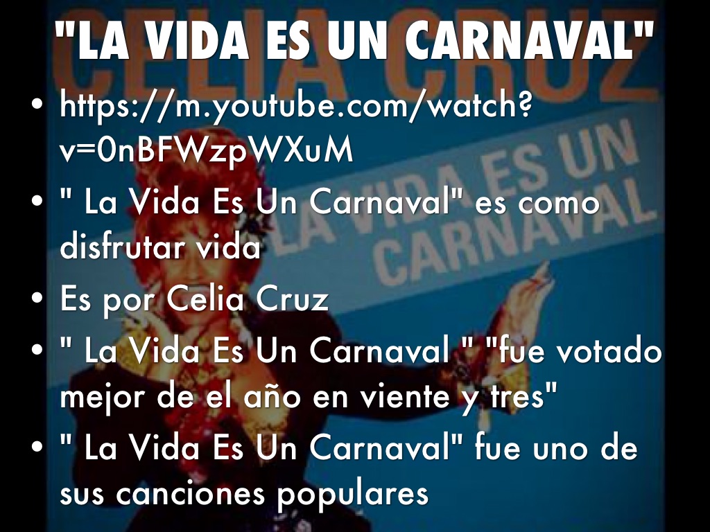 " La Vida Es Un Carnaval" es como disfrutar vida