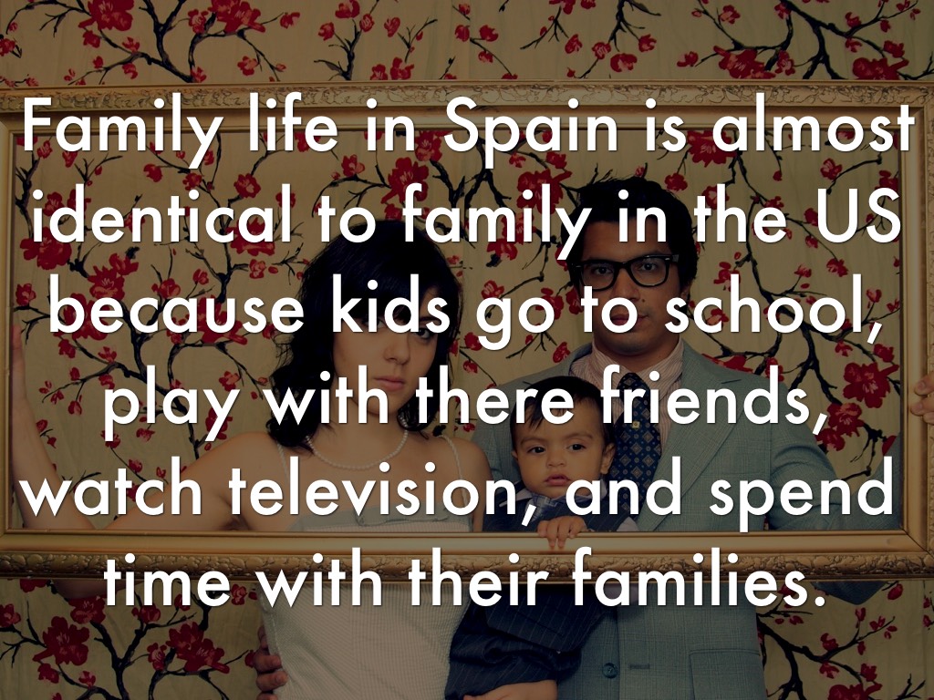 Family life in Spain is almost identical to family in the US because kids go to school, play with there friends, watch television, and spend time with their families.