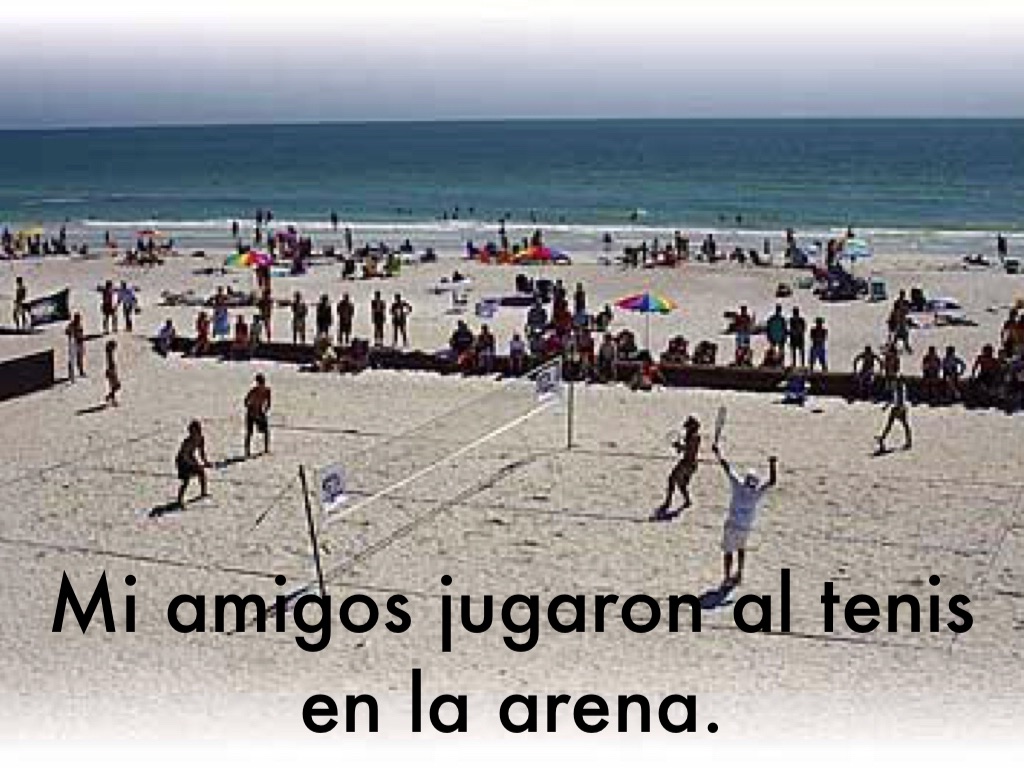 Mi amigos jugaron al tenis en la arena.
