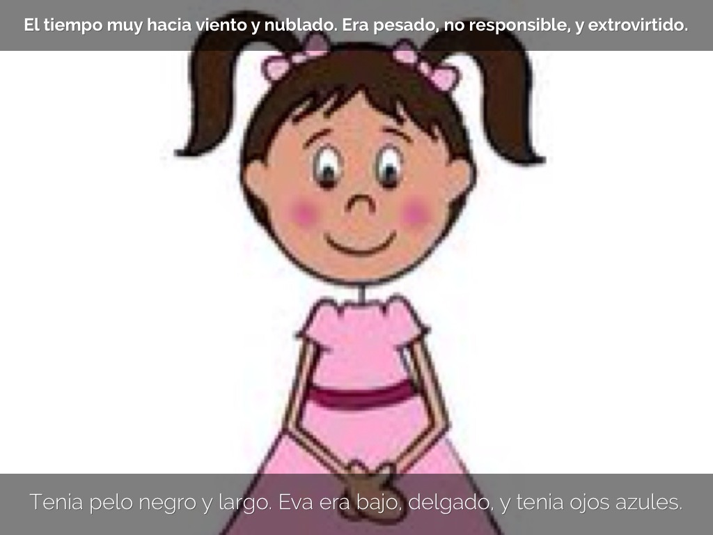 El tiempo muy hacia viento y nublado. Era pesado, no responsible, y extrovirtido.