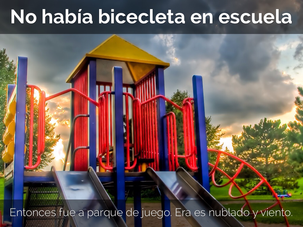 No había bicecleta en parque de juego. Eva era mucho triste.
