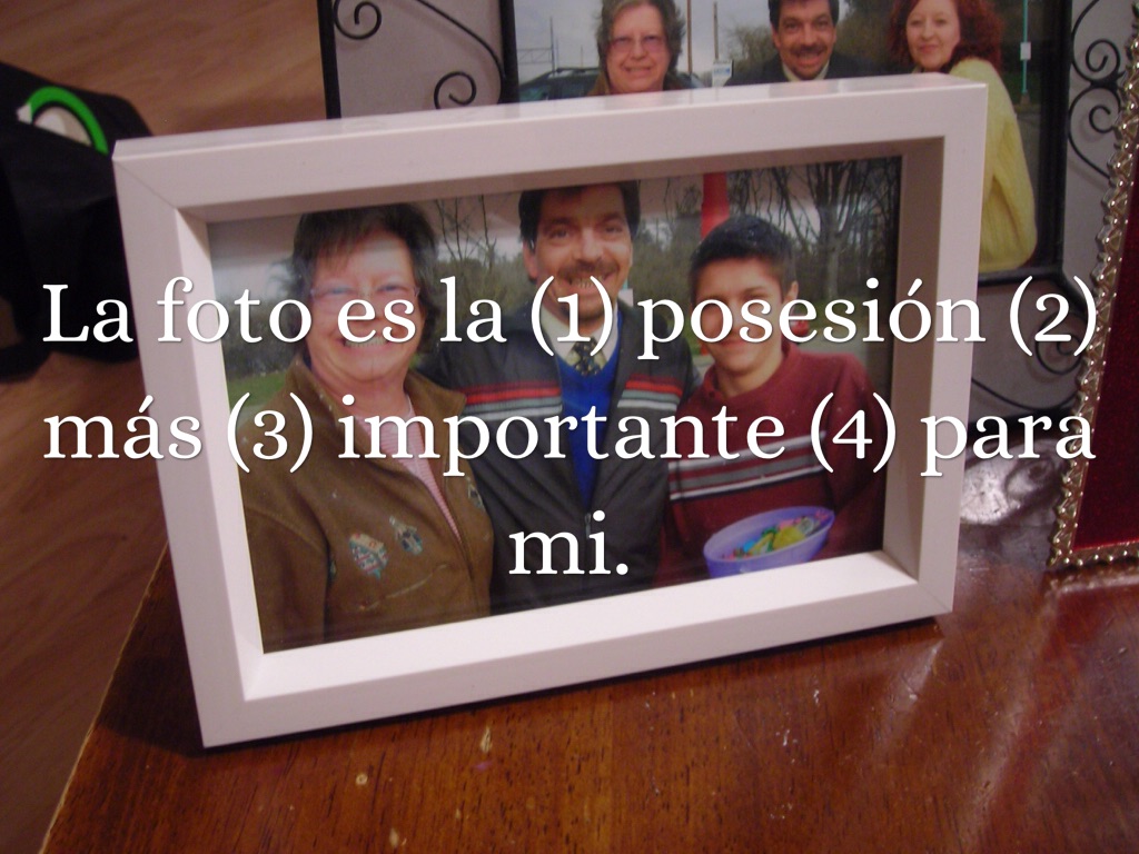 La foto es la (1) posesión (2) más (3) importante (4) para mi.