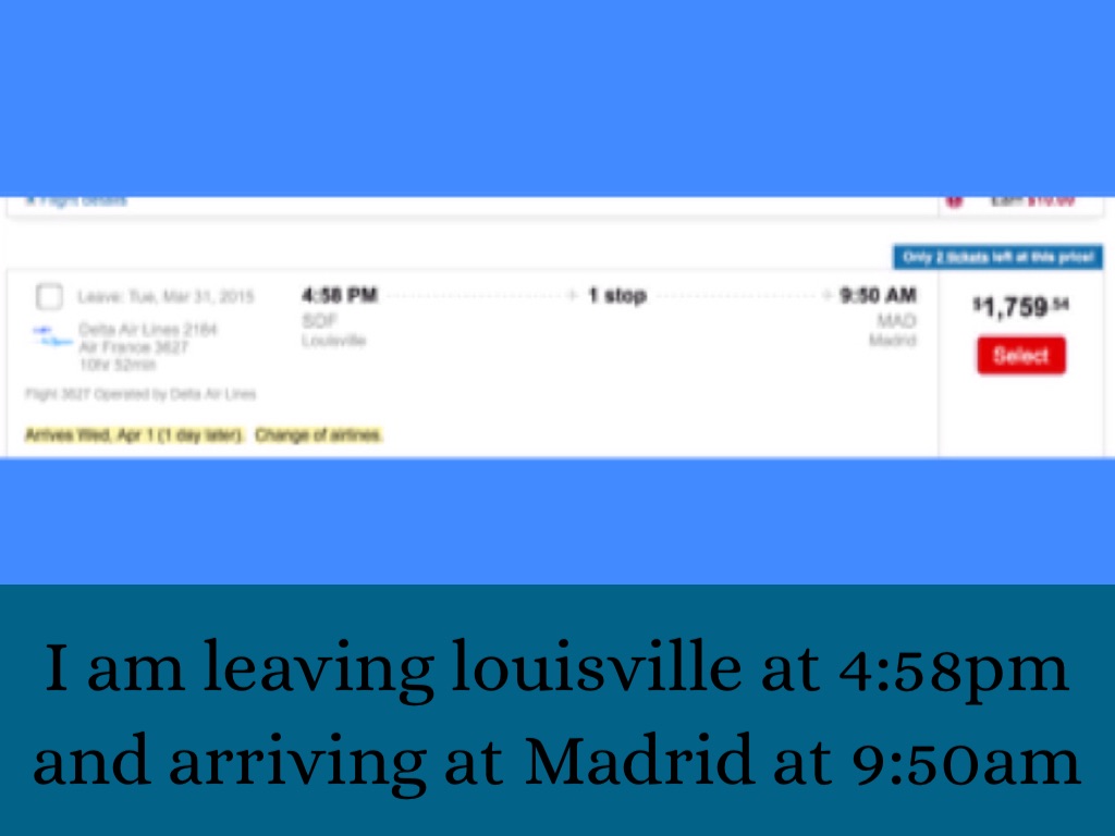 I am leaving louisville at 4:58pm and arriving at Madrid at 9:50am