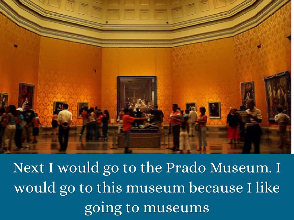 Next I would go to the Prado Museum. I would go to this museum because I like going to museums